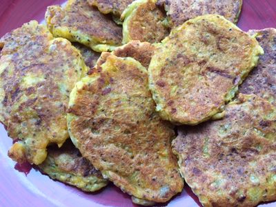These fritters are delish - even through they have courgette in them! I am not a fan of courgette but cannot taste them. Eat with sweet-chilli sauce.